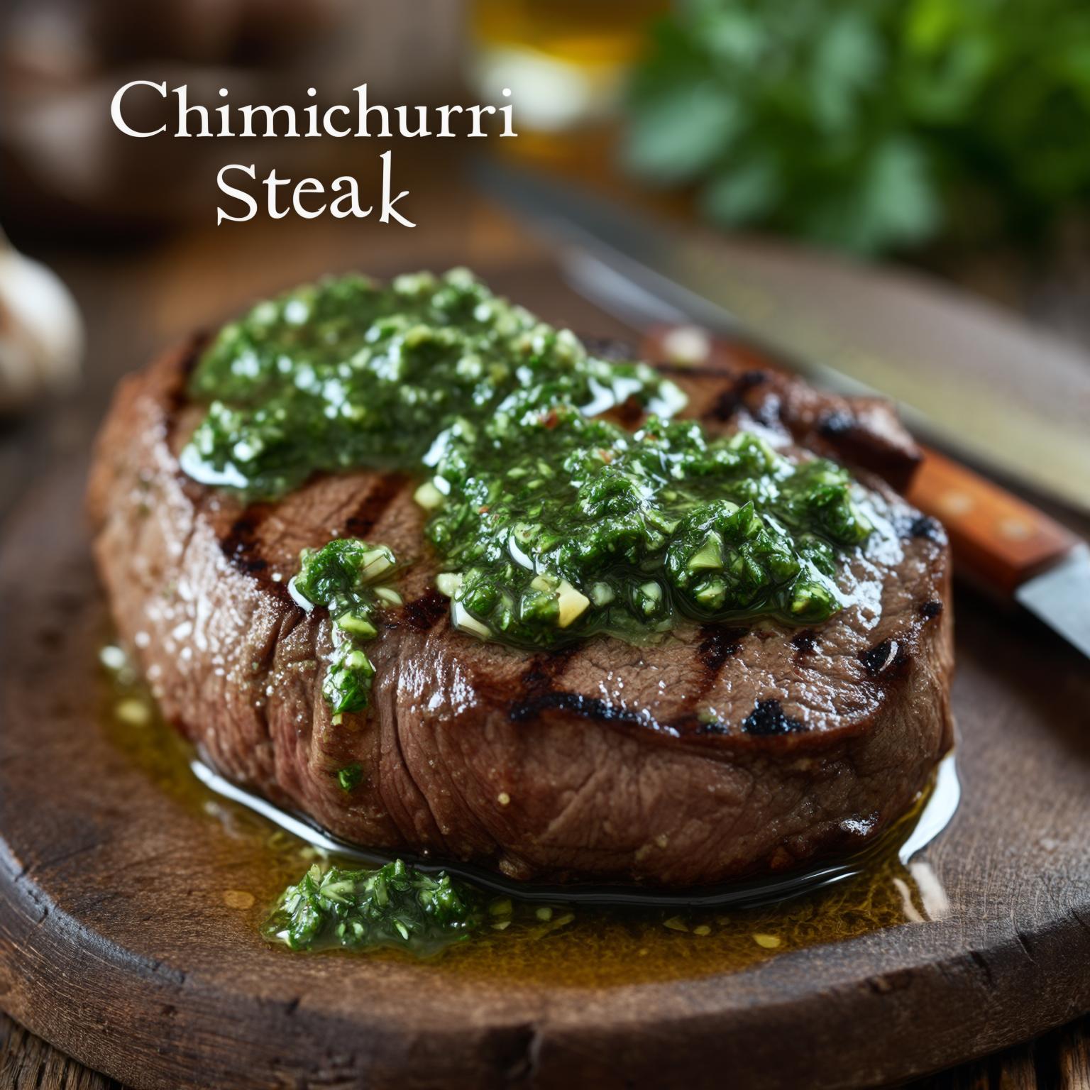 9. Arrange the sliced skirt steak on a platter and spoon chimichurri sauce generously over the top, serving any extra chimichurri on the side.