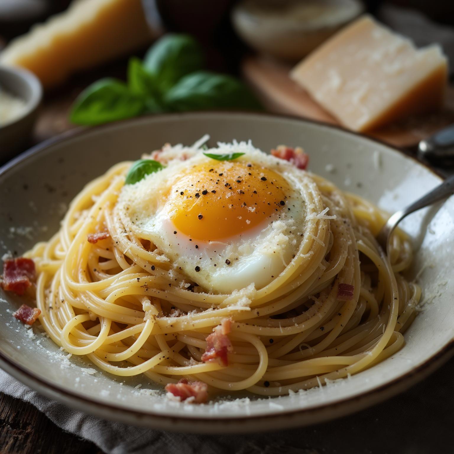 A simple Roman-style pasta with eggs, cheese, black pepper, and crispy pork, designed for a quick weeknight dinner with minimal fuss.